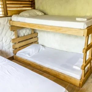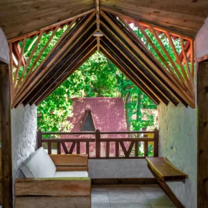 La Cabaña Chalete, ubicada en el tercer piso, es ideal para familias o grupos que desean una experiencia de descanso rodeada de naturaleza. Con capacidad para seis personas y una cocina completamente dotada, ofrece independencia y comodidad en cada detalle.