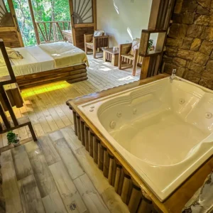 Las Cabañas Suites Luxury están diseñadas para quienes buscan una escapada exclusiva y llena de encanto. Ideales para parejas, combinan el confort moderno con la belleza natural de la montaña. Disfruta de un baño privado con jacuzzi, balcón con vista, aire acondicionado y una malla privada perfecta para relajarte frente al paisaje.