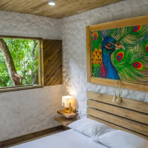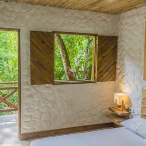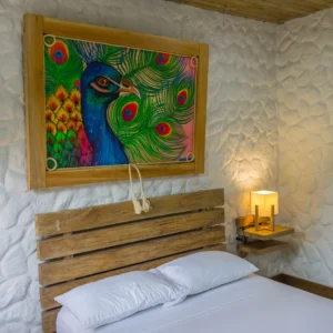 La Habitación Sencilla es el espacio ideal para parejas o viajeros que buscan confort y serenidad. Equipada con una cómoda cama doble, baño privado y acceso a todas las zonas comunes, ofrece el equilibrio perfecto entre descanso y conexión con la naturaleza.